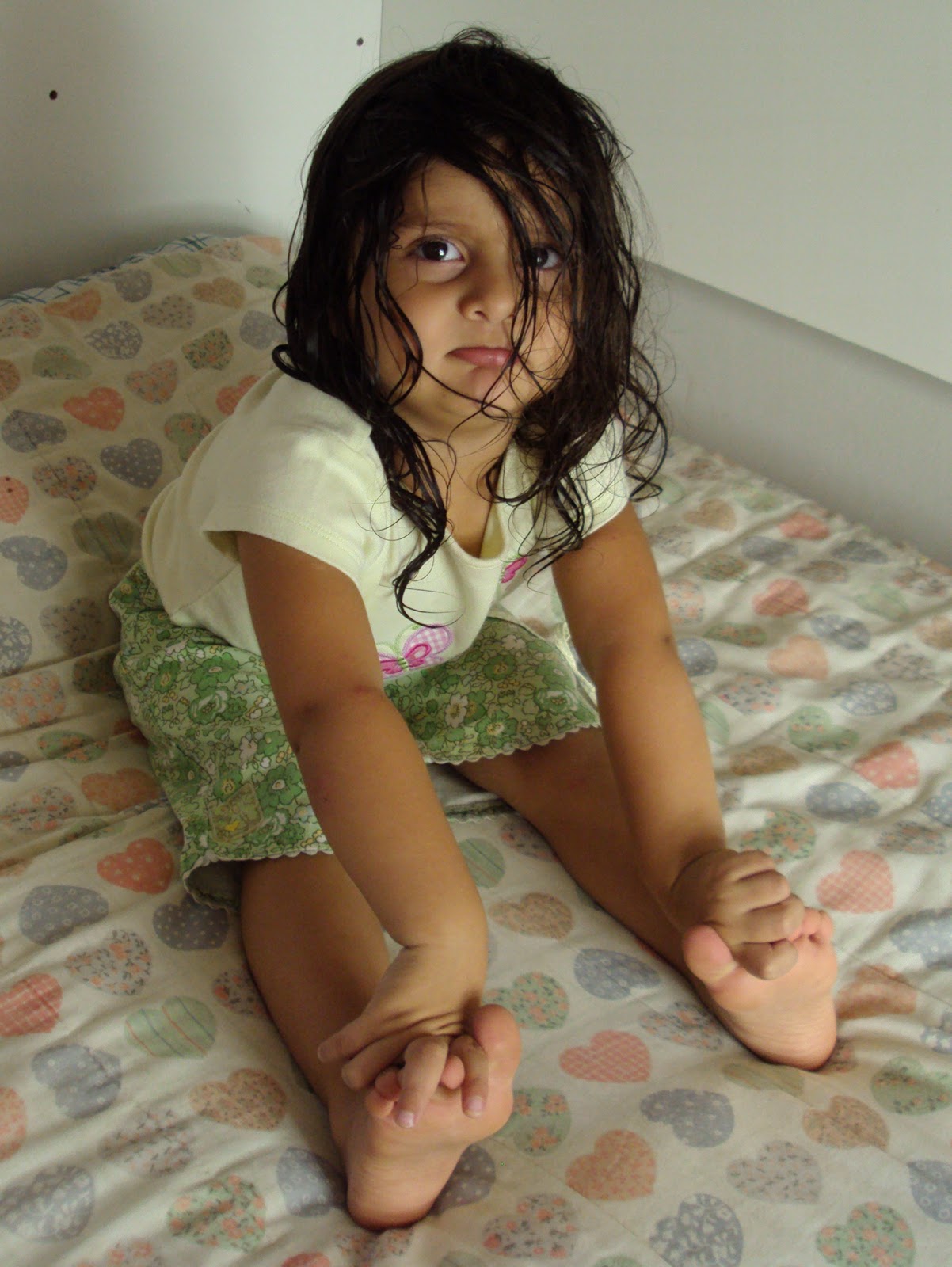 So the story goes like this: One fine day, my sister was using the bathroom. She didn't lock the door because my mommy said we should never lock the door. So anyway, she was sitting on the toilet talking to herself when I decided to push open the door and see if she was ok. Well now that I think of it, she was ok since I just said that she was seated there talking ... to herself. She didn't like the fact that I opened the door, so she slammed it. On my finger. My poor, little, helpless finger got crushed, and smashed. It turned purple, blue, and green. I cried a lot. My grandma made a nice little bandage. My mommy only found out about it a while later ... she was working. It's better now. All done!